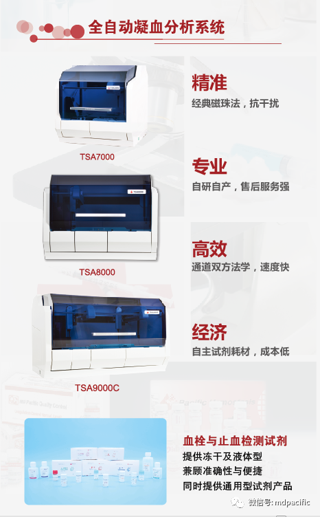 美德太平洋TSA系列全自動凝血分析儀及自研自產(chǎn)配套凝血試劑、質(zhì)控品緊跟市場需求的變化,結(jié)合了經(jīng)典的磁珠方法并加以創(chuàng)新,通過“雙磁珠法+光學(xué)”形成自己的風(fēng)格。一直致力于高品質(zhì)凝血試劑的生產(chǎn),從原料到凍干品試劑都擁有自己的配套系統(tǒng)和完整的凍干曲線,將試劑、儀器、質(zhì)控、耗材四位一體,互相調(diào)整配合,保證試劑的穩(wěn)定性和一致性,成為企業(yè)發(fā)展中產(chǎn)品優(yōu)勢的核心。