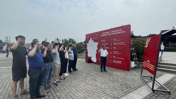 在常州科技黨支部書記張帆的帶領(lǐng)下,北自所常州基地的黨員們在新四軍江南指揮部舊址廣場上重溫了入黨誓詞。全體黨員面向黨旗,高舉右拳重溫入黨誓詞,神情莊重、聲音鏗鏘。