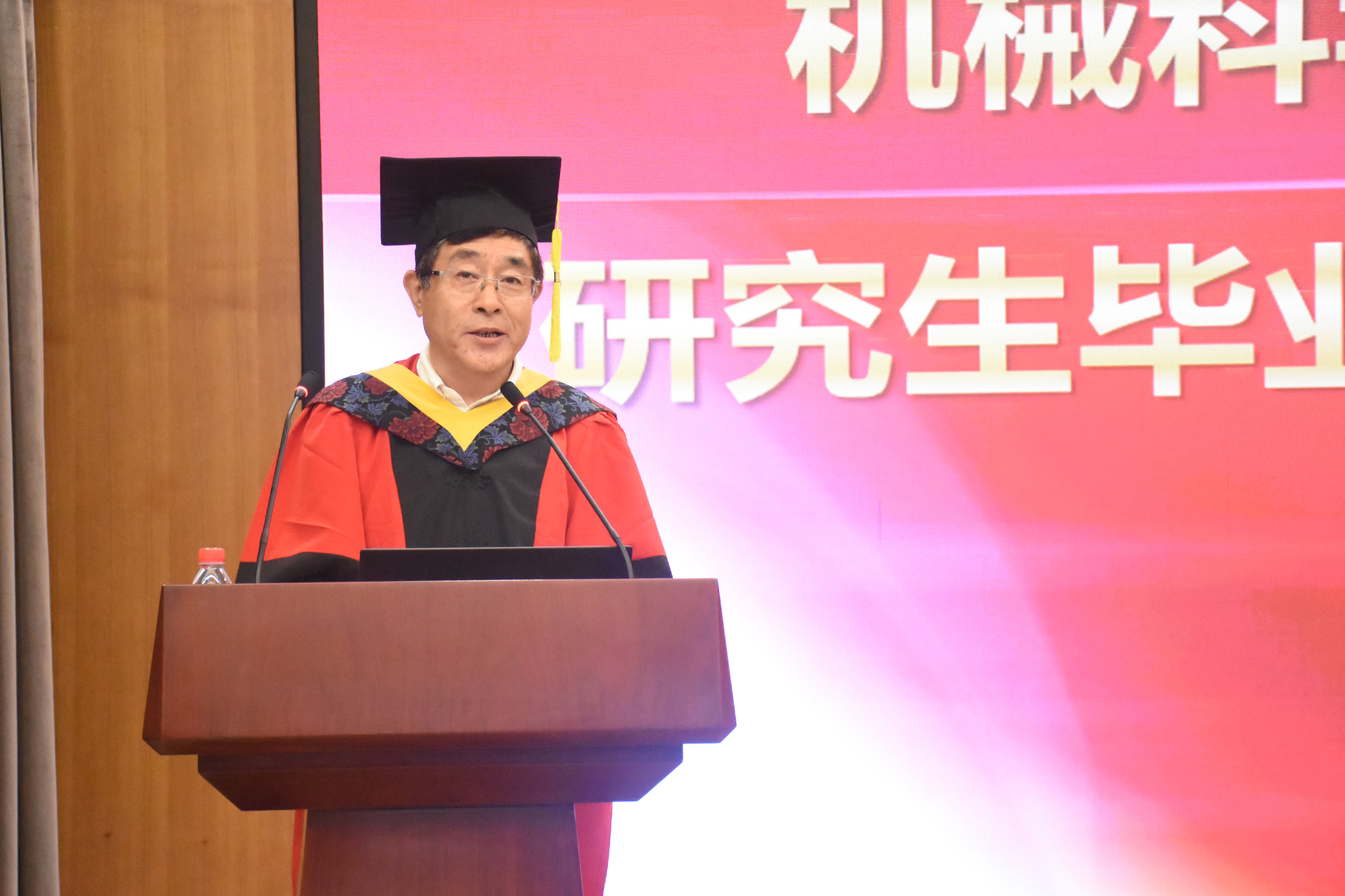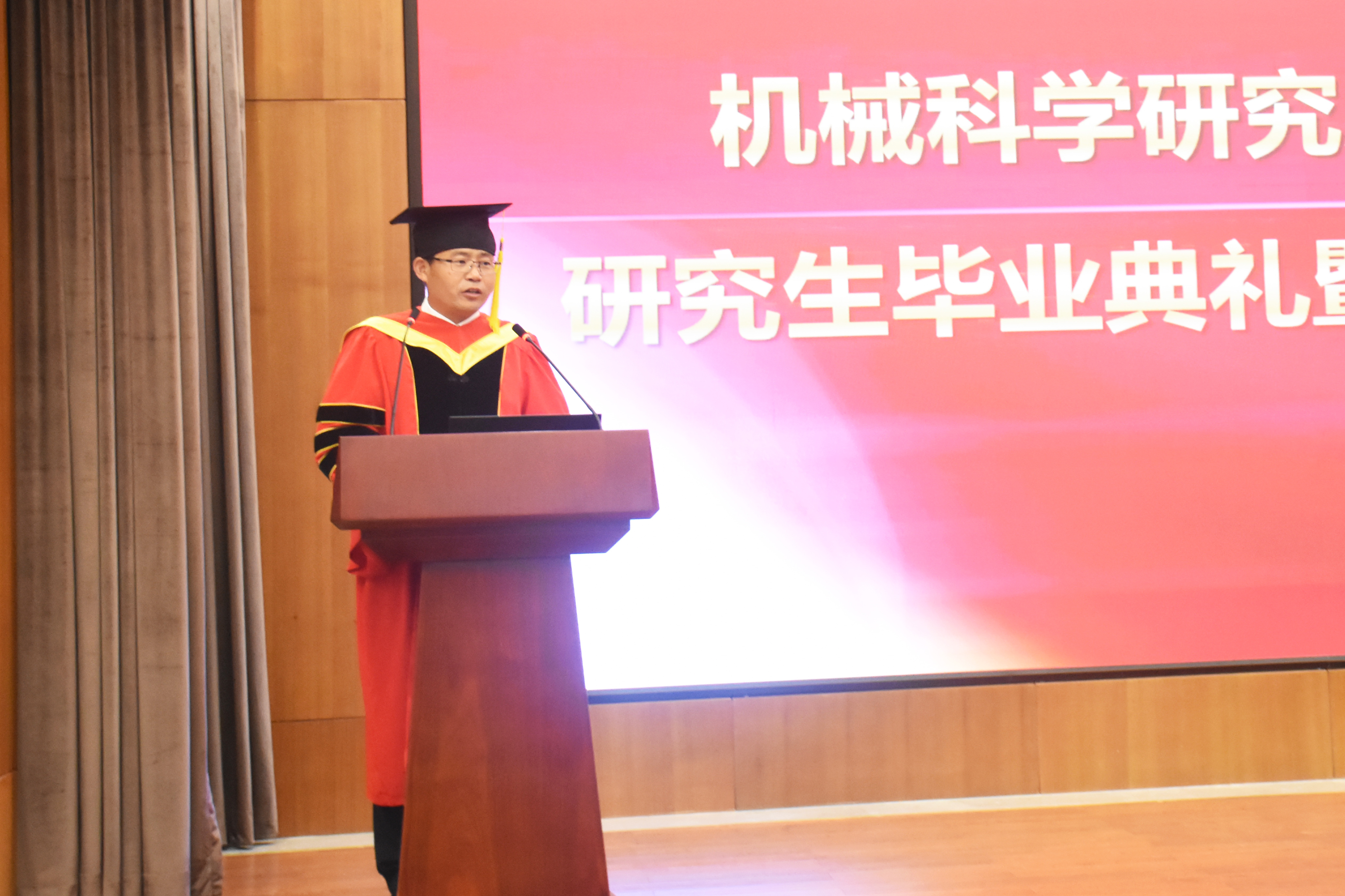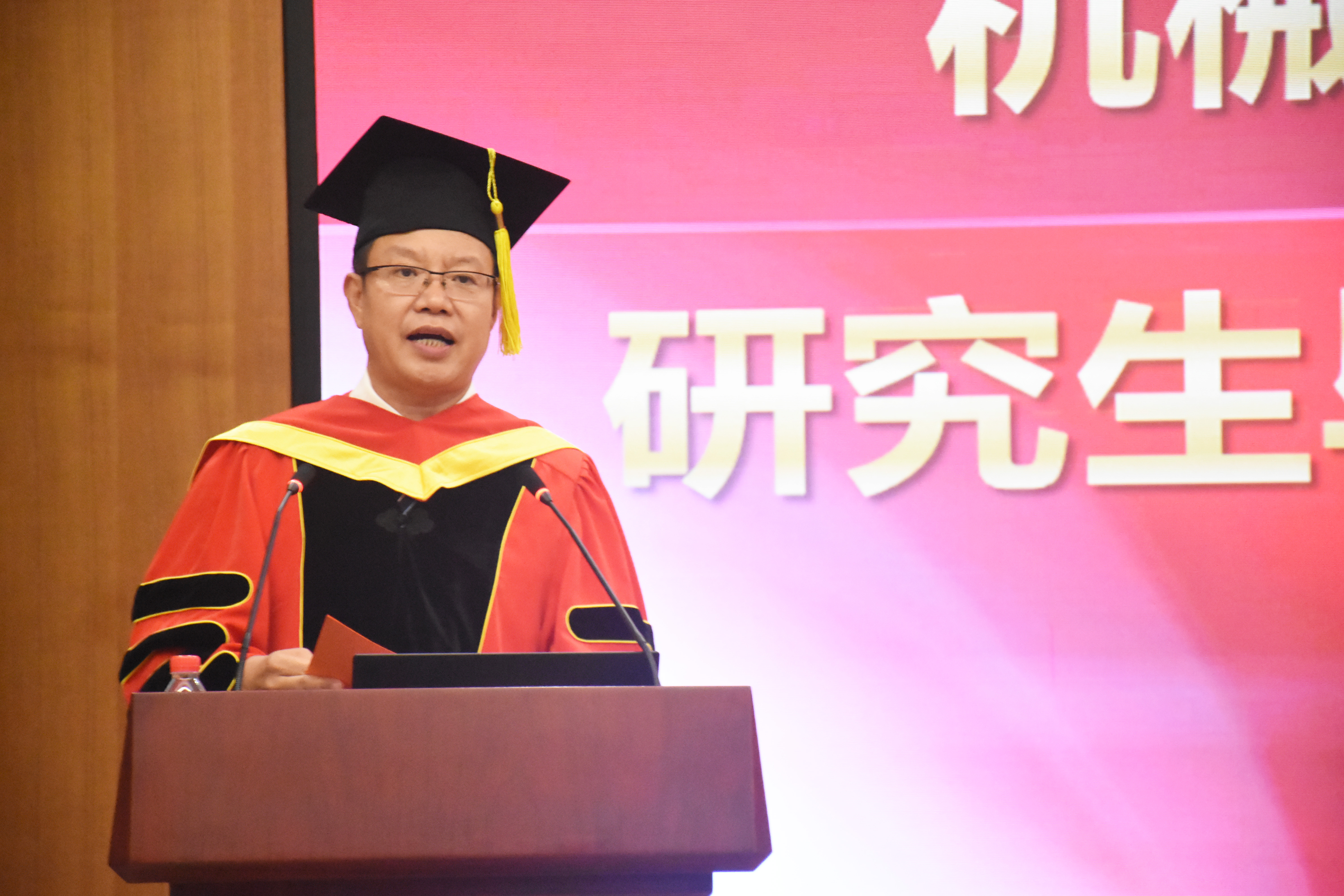 最后,王德成主席作了重要講話,他祝賀所有畢業(yè)生順利畢業(yè)并取得學(xué)位,對(duì)導(dǎo)師、各研究生培養(yǎng)單位以及相關(guān)職能部門(mén)的辛勤工作表示感謝,對(duì)家長(zhǎng)們的默默付出致以敬意,并對(duì)畢業(yè)生們?cè)诮窈蟮膶W(xué)習(xí)工作中提出了三點(diǎn)希望:一是希望同學(xué)們牢固樹(shù)立正確的人生觀、價(jià)值觀,恪守做人之道,牢記習(xí)近平總書(shū)記“愛(ài)國(guó)、勵(lì)志、求真、力行”的囑托,進(jìn)一步培養(yǎng)自己的高尚情操,提升自己的人格品味;二是希望同學(xué)們不斷學(xué)習(xí)、持續(xù)提升和全面發(fā)展,永葆進(jìn)取之心,在新時(shí)代有新?lián)?dāng)和新作為,“幸福都是奮斗出來(lái)的,奮斗本身也是一種幸福”,“每個(gè)青年都應(yīng)該珍惜這個(gè)偉大時(shí)代,做新時(shí)代的奮斗者”;三是希望同學(xué)們志存高遠(yuǎn),“自信人生二百年,會(huì)當(dāng)水擊三千里”,不斷發(fā)揚(yáng)創(chuàng)新精神和“工匠精神”,腳踏實(shí)地,愛(ài)黨愛(ài)國(guó)、愛(ài)院愛(ài)家,奏響更加精彩的人生篇章。