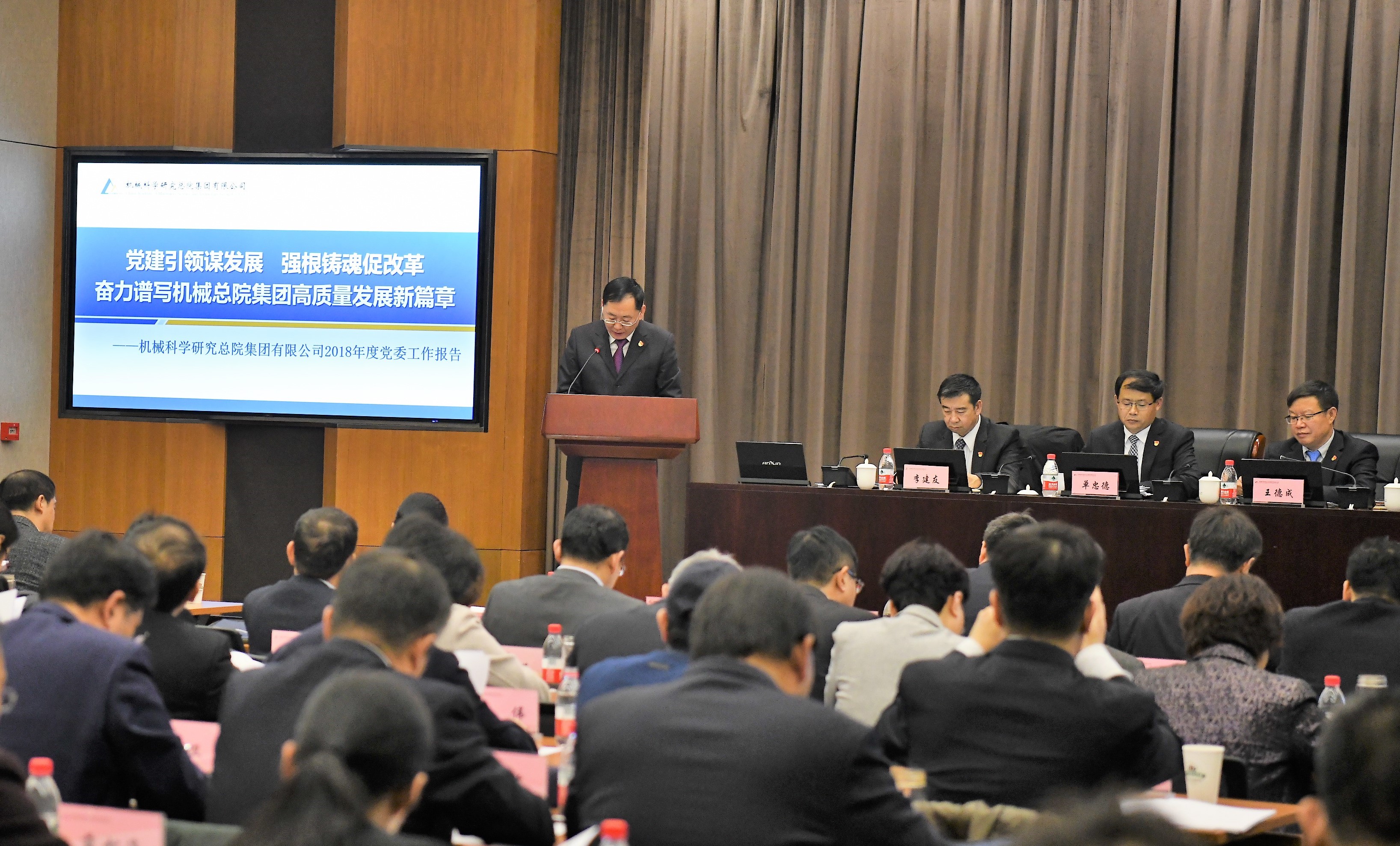 集團(tuán)黨委副書記、董事王西峰在會議上作《黨建引領(lǐng)謀發(fā)展強(qiáng)根鑄魂促改革 奮力譜寫機(jī)械總院集團(tuán)高質(zhì)量發(fā)展新篇章》黨委工作報告,報告全面回顧了集團(tuán)2018年黨建工作取得的成績,分析了黨建工作面臨的新形勢和新要求,明確了2019年黨委工作總體思路和要求,部署了2019年工作。王西峰副書記指出:在國資委黨委的正確領(lǐng)導(dǎo)下,機(jī)械總院集團(tuán)黨委以習(xí)近平新時代中國特色社會主義思想為指導(dǎo),深入學(xué)習(xí)貫徹黨的十九大精神,深入貫徹落實全國組織工作會議、全國國有企業(yè)黨的建設(shè)工作會議、中央企業(yè)黨的建設(shè)工作座談會精神,高舉旗幟,強(qiáng)根鑄魂,以黨的政治建設(shè)為統(tǒng)領(lǐng),以黨建工作責(zé)任制為抓手,以履行黨風(fēng)廉政建設(shè)“兩個責(zé)任”為保障,以發(fā)揮群團(tuán)組織作用為依托,集團(tuán)經(jīng)營業(yè)績再創(chuàng)歷史新高,高質(zhì)量黨建引領(lǐng)高質(zhì)量發(fā)展。2019年,機(jī)械總院集團(tuán)黨委將以習(xí)近平新時代中國特色社會主義思想為指導(dǎo),全面貫徹黨的十九大、十九屆二中、三中全會和中央經(jīng)濟(jì)工作會議精神,堅持和加強(qiáng)黨的領(lǐng)導(dǎo),按照高質(zhì)量發(fā)展的要求,發(fā)揮黨建優(yōu)勢,以“基層黨建推進(jìn)年”為抓手,堅持“三個融入”,深化“三基建設(shè)”,推動全面從嚴(yán)治黨向基層延伸,開創(chuàng)集團(tuán)高質(zhì)量黨建引領(lǐng)高質(zhì)量發(fā)展新局面。